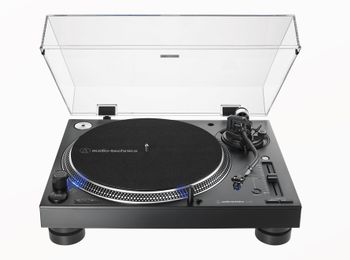 Il giradischi professionale per DJ AT-LP140XP completamente manuale è dotato di un motore a trazione diretta a coppia elevata e di un piatto in alluminio pressofuso antirisonante e smorzato in massa per garantire una rotazione stabile e in asse a 33-1/3, 45 e 78 RPM. È dotato di un braccio a forma di S con regolazione dell’altezza, forza di tracciamento regolabile (contrappeso) e controllo dinamico anti-skate regolabile.